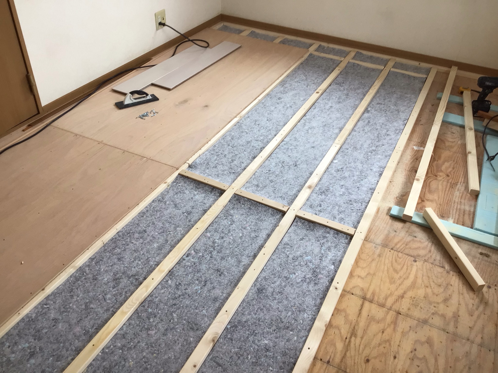 たたみの床を、遮音性のフローリングにすることと