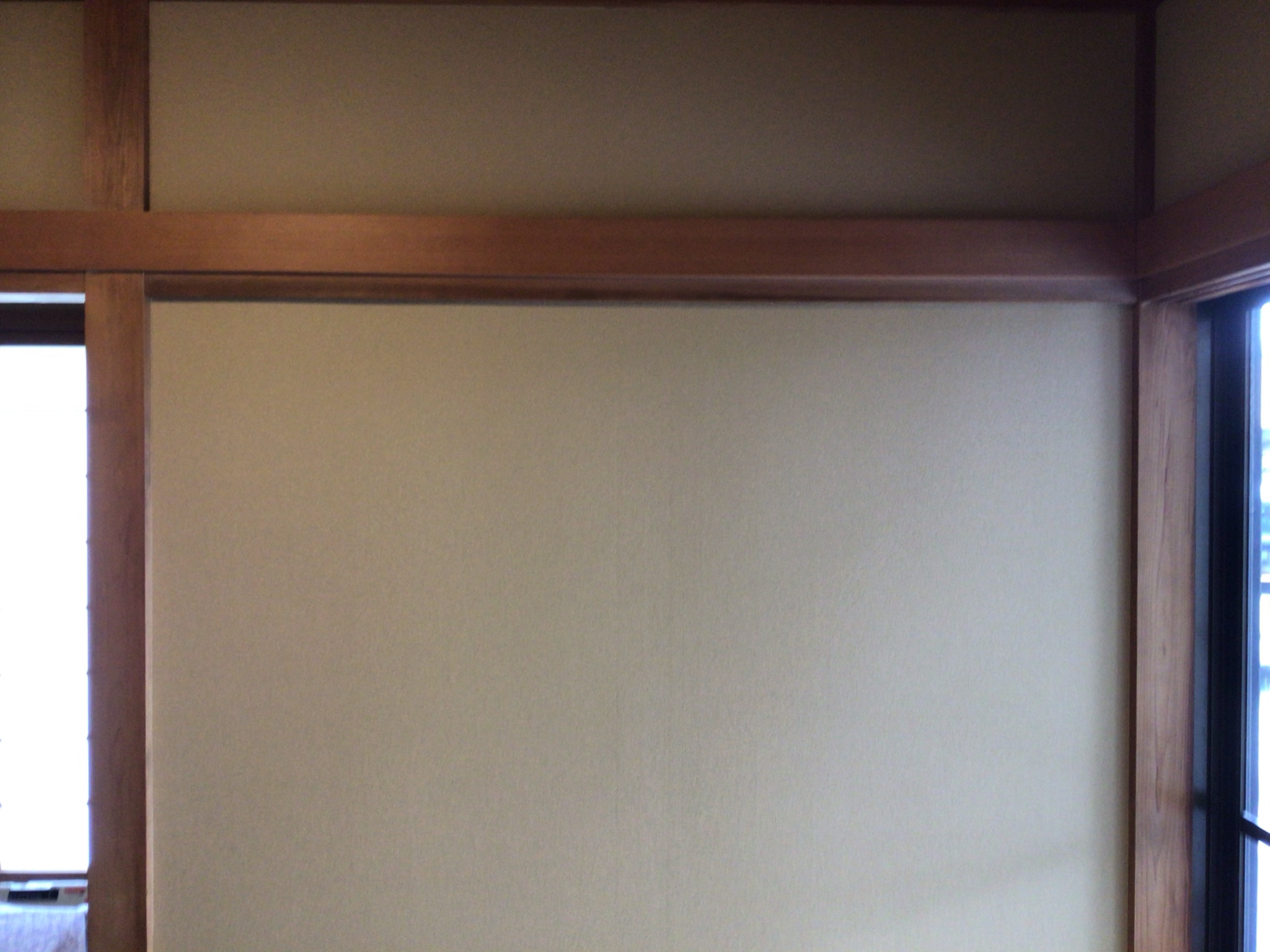 和室のじゅらく壁、べニア板を打ち付けまして、リフォーム工事完了しました。