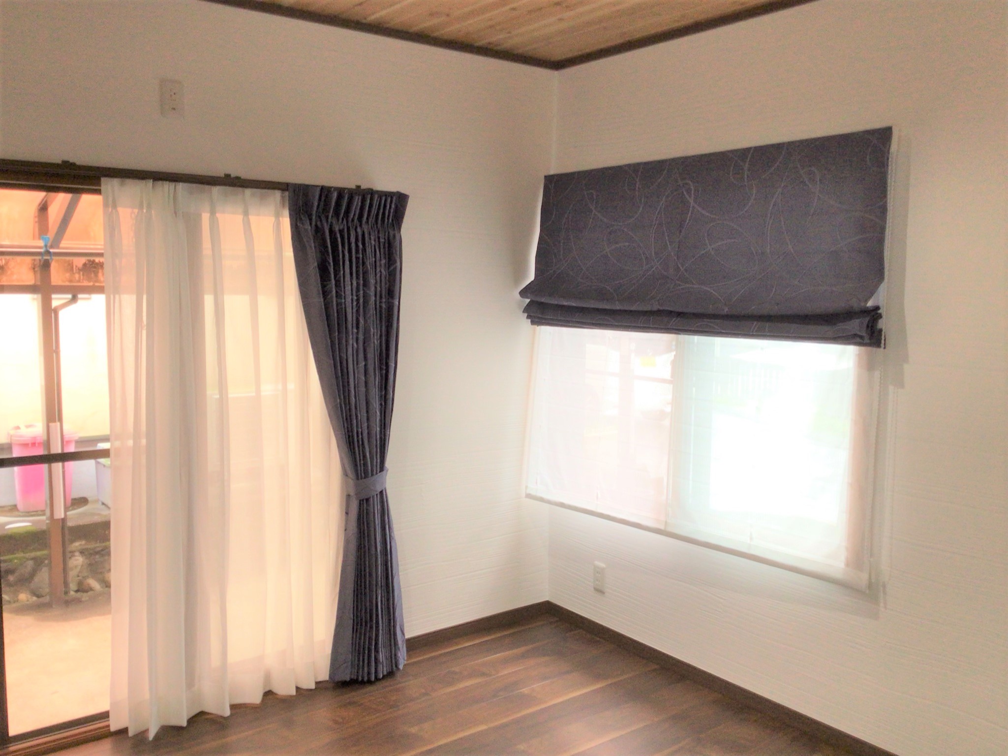 リフォームしました部屋の窓に、ローマンシェード、カーテンを設置しました。