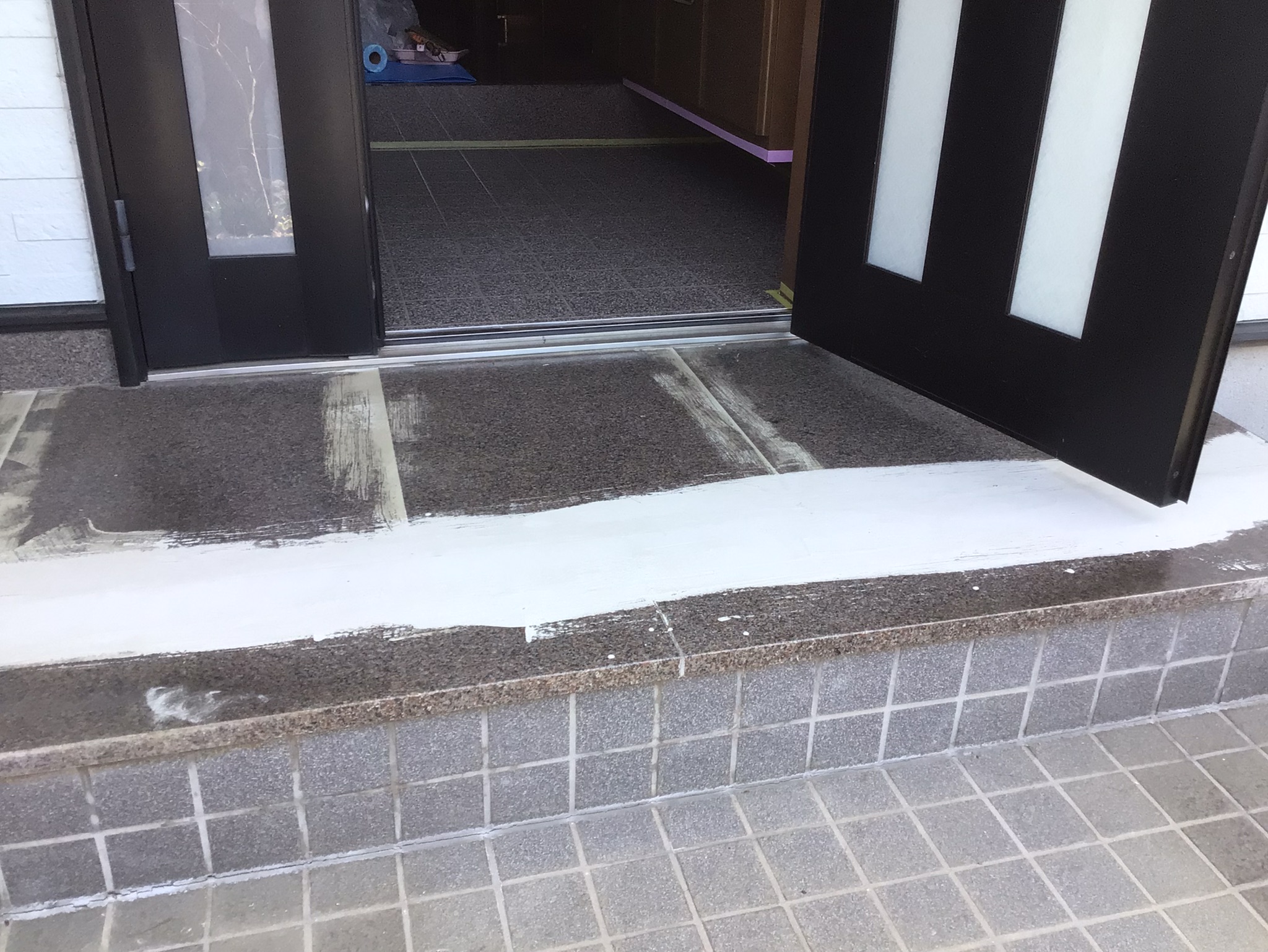 すべりやすい玄関の床、安全対策として、防滑シートでリフォームしました。