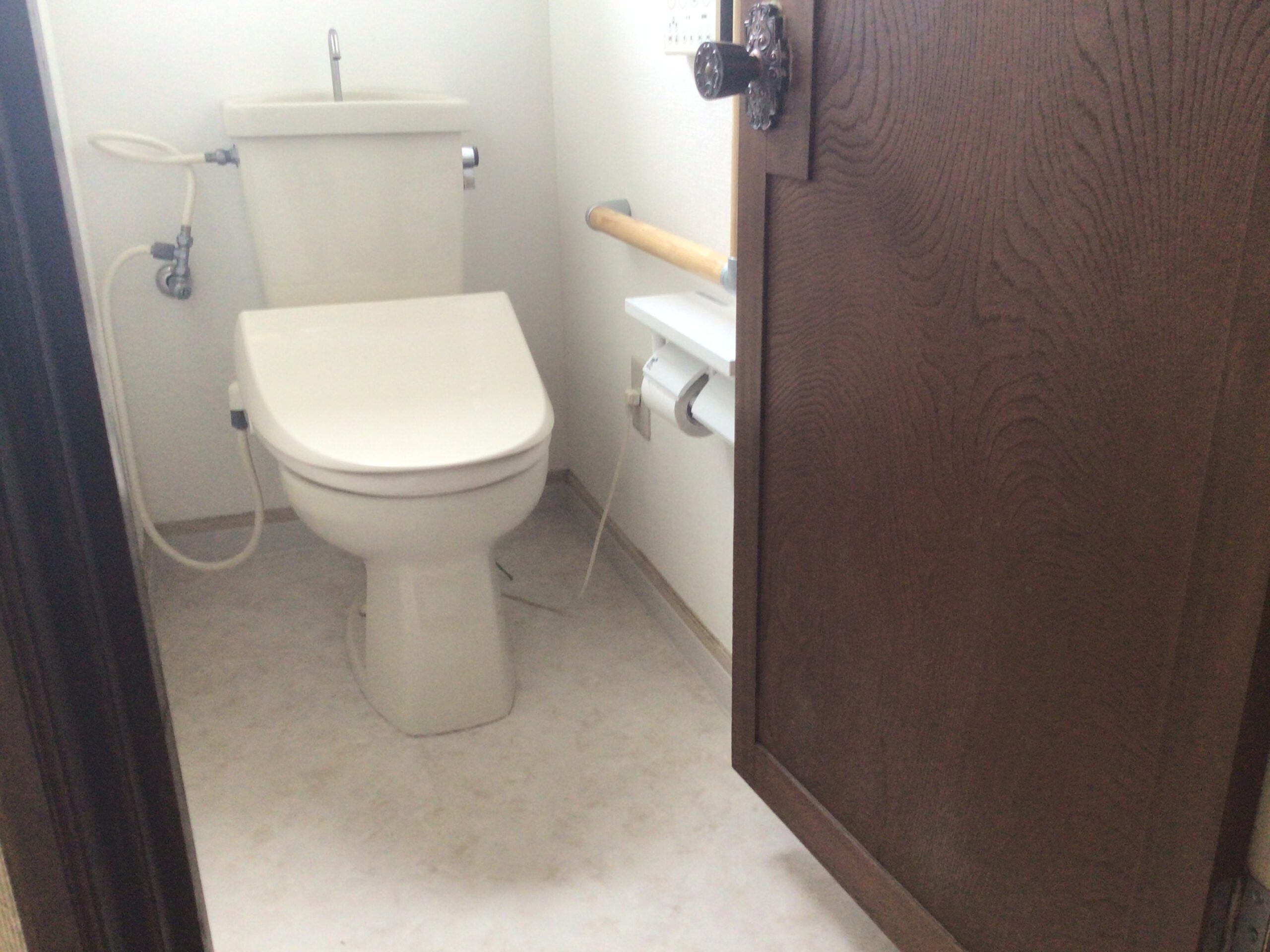 L字型の手摺りと、2連のペーパーホルダーを設置